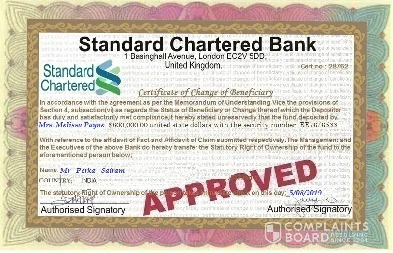 Standard Chartered Bank's business practices are illegal; giving them any confidential docs is risky.
