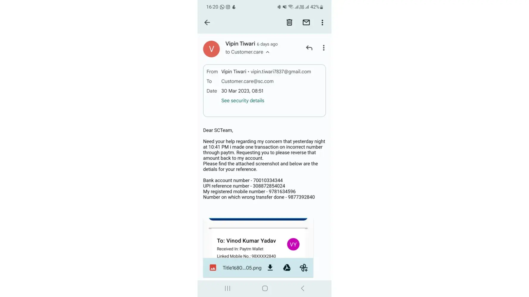 I then went to SCB Branch located at Cunnigham Road,Bangalore. There they took two days to resolve the matter and they told me that it is their bank mistake.