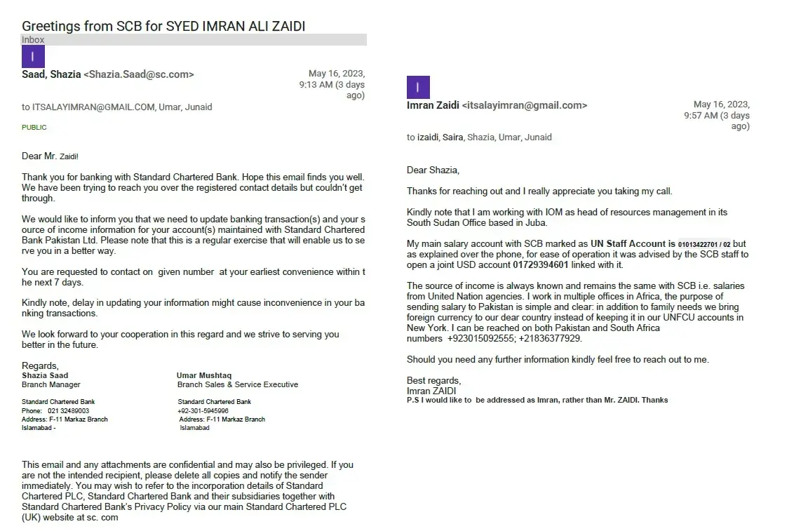 Serious problems with relationship mechanism. Today I have been advised to close out the bank account and choose any other bank. This is extremely worrisome and the last thing you would ever hear from any RM of customer-oriented institution. I can be reached on given contacts +[protected], +[protected]; izaidi@iom.int, itsalayimran@gmail.com.
