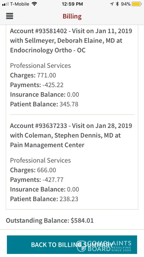The amounts are $163.98 for Dr Sellmeyer on 1/11/19 and $110.97 for Dr Coleman on 1/28/19. My mrn number [protected]