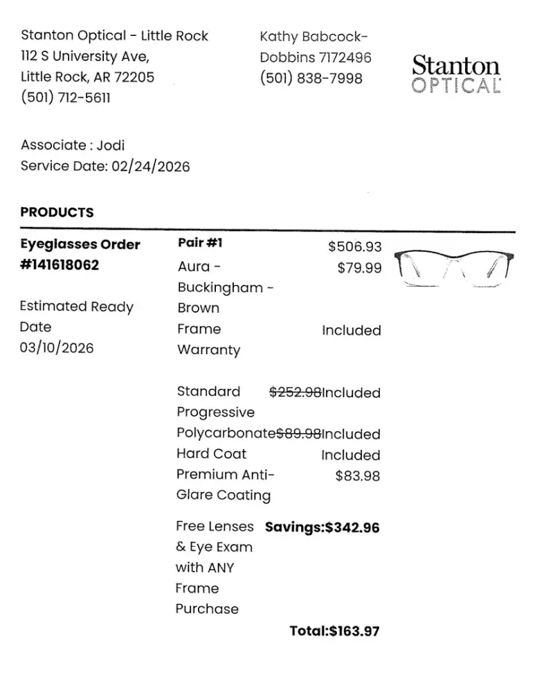 I went to Stanton 2/24/26 deal was free eye exam and free lenses with purchase of any frames. I was charged $79.00 for exam and then $163.47 (Buckingham frames $79.99 and Premium Anti-Glare coating $83.98) Did not deduct $79.00 or refund it. I want my $79.00 refunded. Jodie at store stated "they just hit a button and it gives credit on exam cost" but it didn't.
