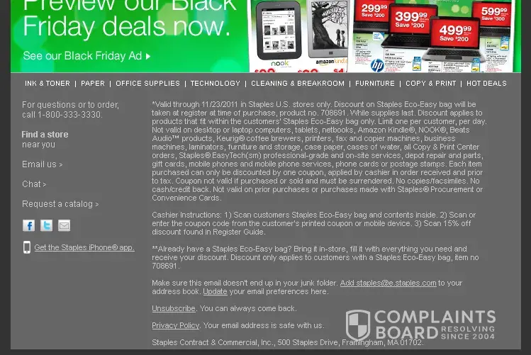 Staples Complaints Page 11 of 14