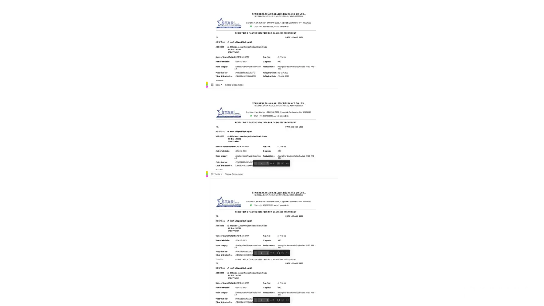 Unfortunate experience with star health insurance claim