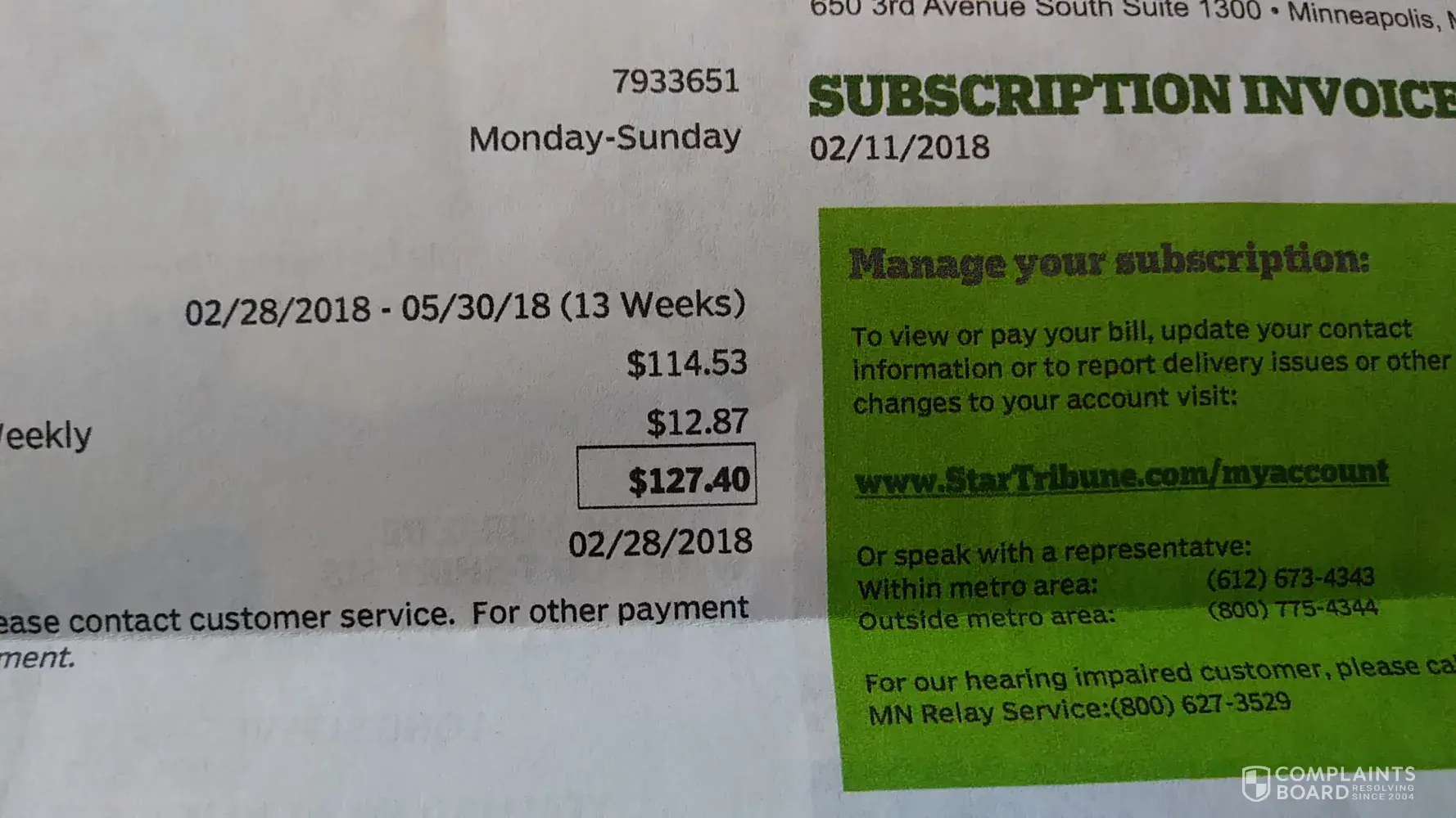 Star Tribune Media Company incredible poor customer service