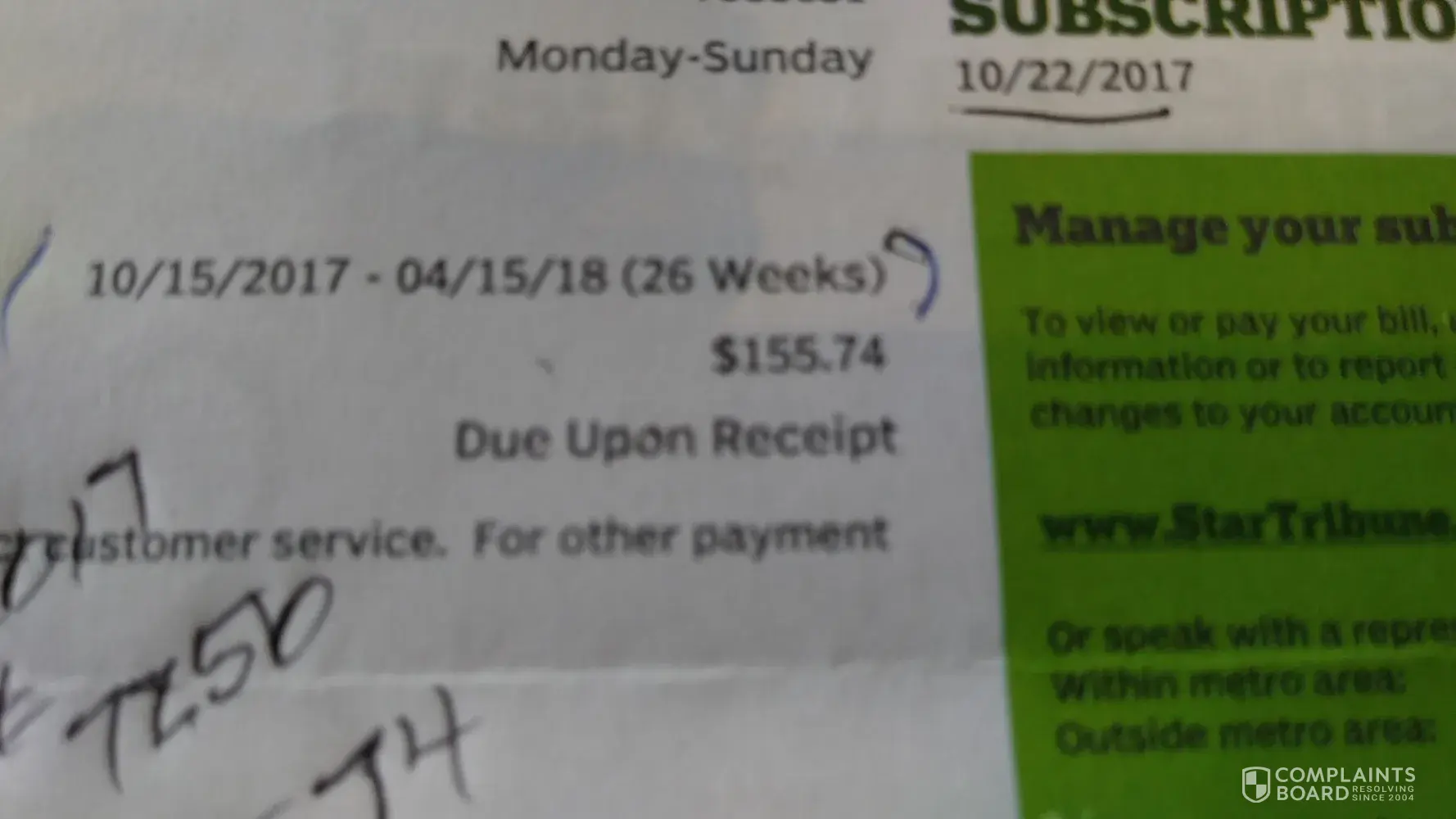 Star Tribune Media Company Unauthorized billing
