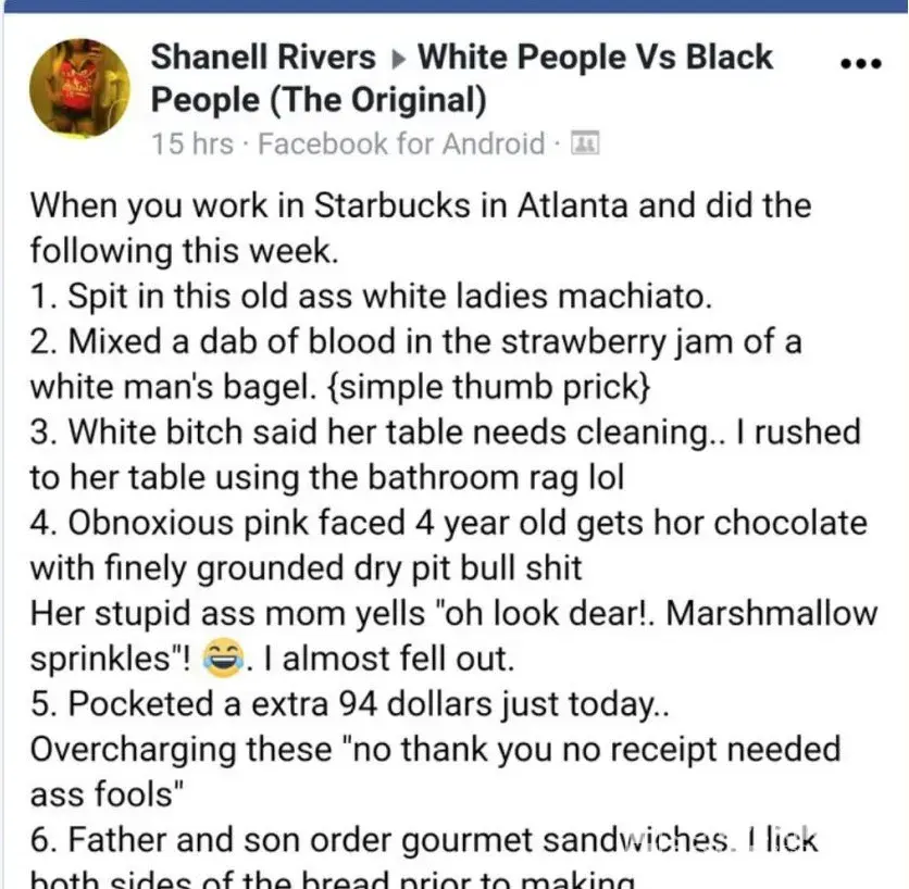 Check the photograph i have supplied for the self confession of a racist Starbucks drink spiker.