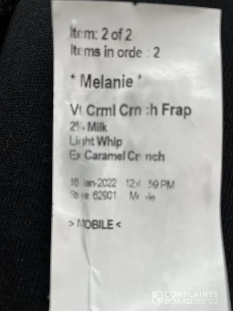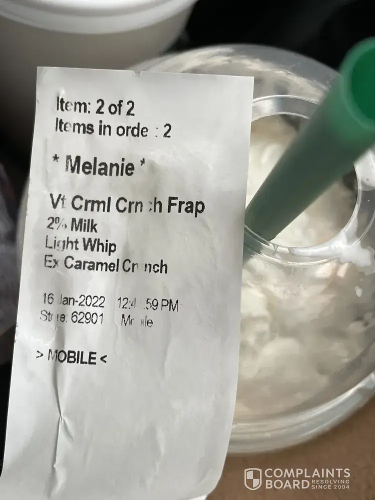 I ordered a caramel ribbon crunch extra crunch. I get it and it has no crunch oh we're out. We'll if you can't give me what I paid for why should I have to pay for it give me back my money keep it and let me go no not helpful people and had to beg for a stupid straw