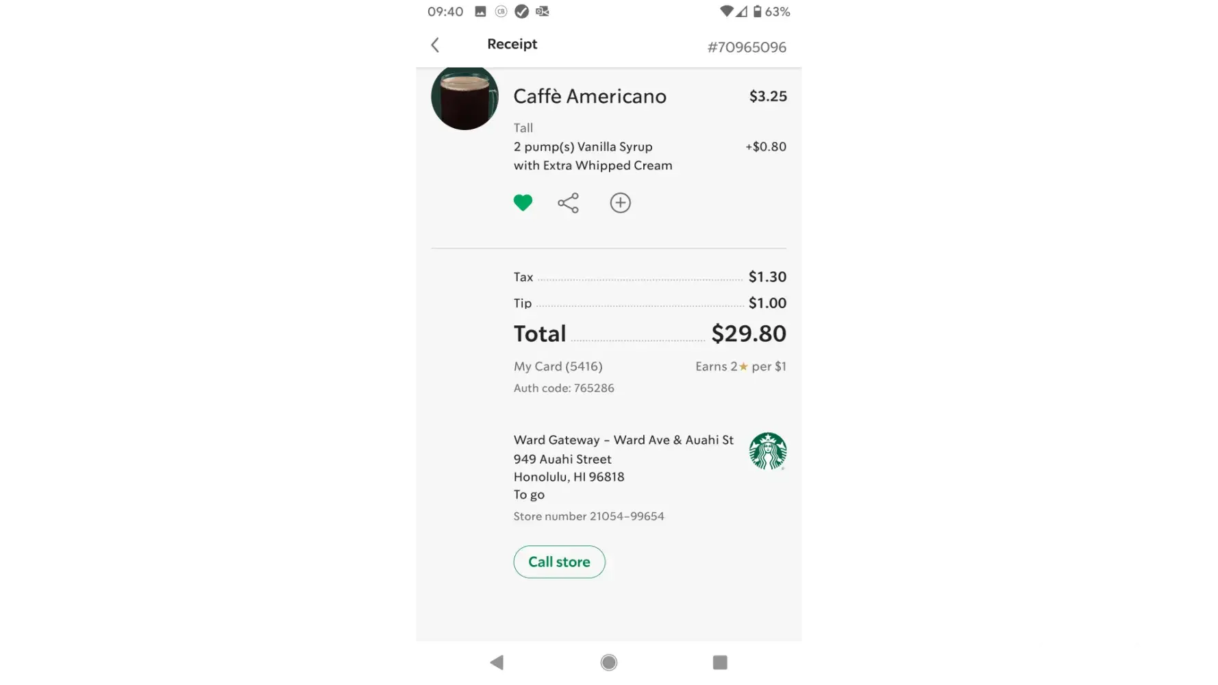 Gold member ID: [protected] Receipt number: 778680 My family and I have gone to this Starbucks @ 9th and Palm every since it opened. My wife and I are both gold members and she even has a Starbucks VISA. My kid and I order coffee, hot chocolate and butter croissant every morning for the past few years as well. As you can see I even have 2710 star...