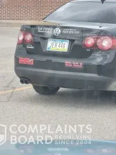 This car belongs to an employee at Starbucks in Burlington Iowa this is how they boost peace in their community. And then the car gets parked right in front of a Domino's store because the employee that drives the car hides from the fact that they have this on their bumper. [censored] Starbucks