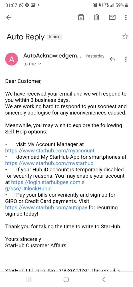 It was a terrible experience and Thran did nothing but to completely disregard Starhub at an organizational level. Starhub was once known for their timely response and highly efficient customer service, but today, Thran has very adequately proven otherwise.