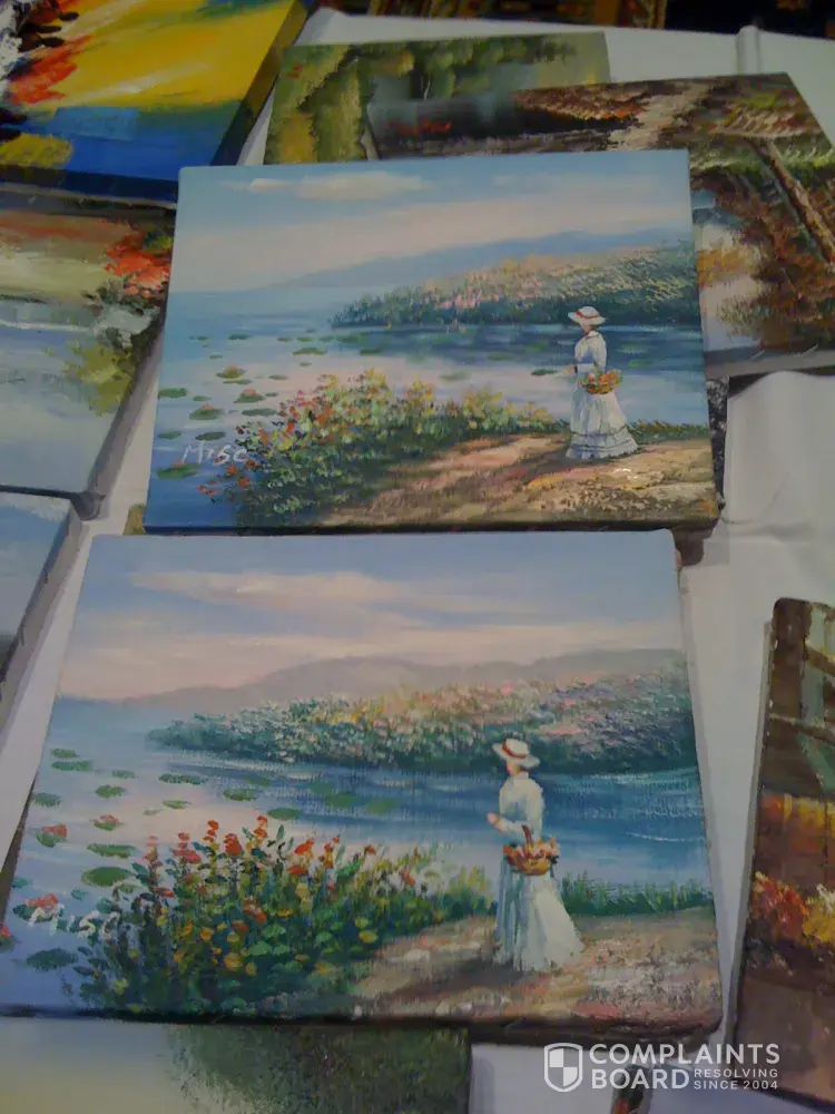 I recently attending a Starving Artists Group sale. They advertised "Original Oil Paintings! Nothing Over $69!" There were hundreds of paintings stacked against their cardboard shipping boxes, the tables and the chairs. I found numerous virtually identical paintings. Some of them had identical artist's signatures on them indicating one person painted...