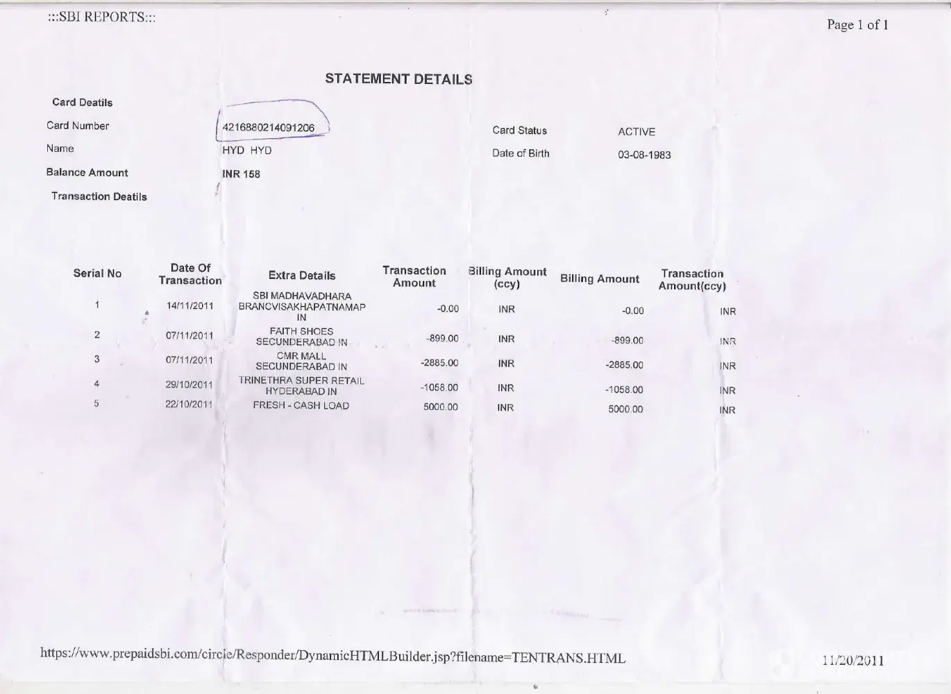 I received a SMS on my mobile at 5:11PM, today about a transaction done on my SBI card - Silver (credit card).
