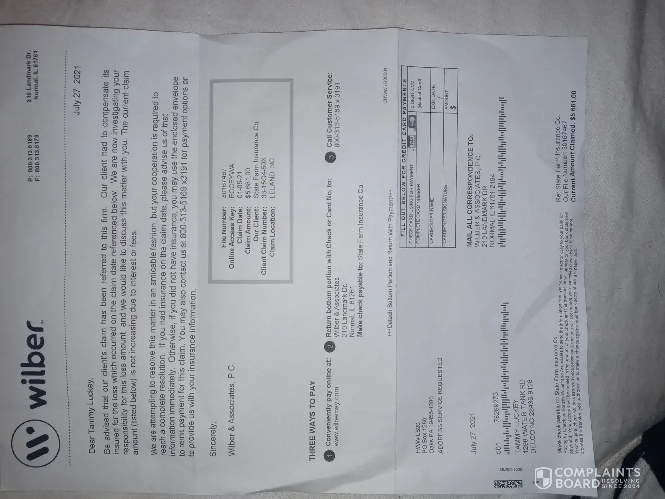 State Farm CLAIM 13-06b5-88l