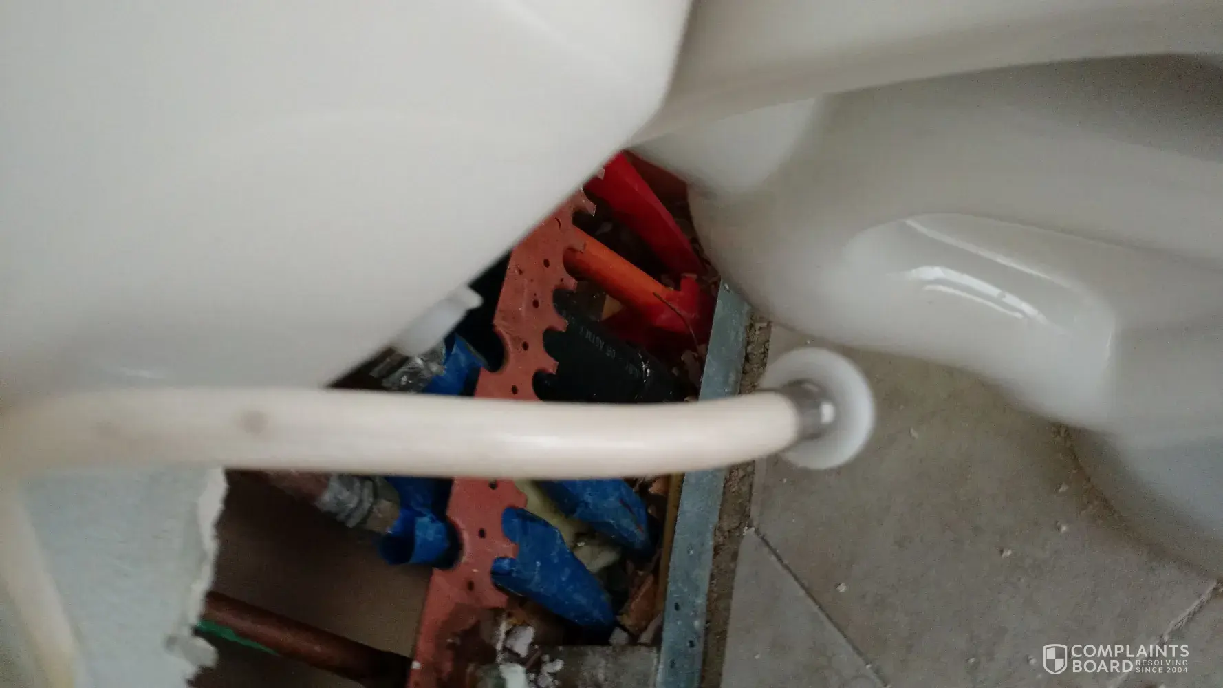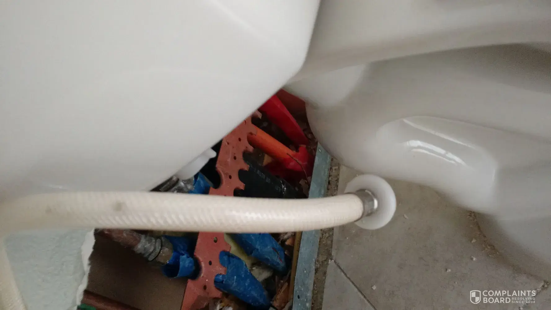 1) The connector was bolted onto the toilet with a plastic nut. Even thought no one was at home, the nut broke causing the floor. I had to pay State Farm the deductible (approximately $1, 500.00) because it was determined that the parts had been manufactured in a foreign country. I have the connector and broken plastic nut in my possession. I will attach photos of the connector and broken plastic nut.