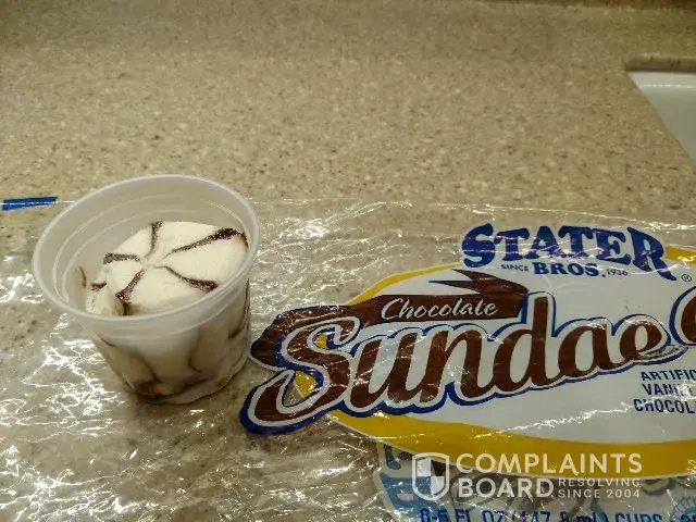 This complaint is concerning ice cream cup sold under the Stator Bros brand. It seem as though the cups do not contain a full volume of ice cream. After purchasing several bags of these cups, it appears each cup is missing 10 to 15 % volume of ice cream. It can't be through evaporation or shrinkage. Why the discrepancy? In buying several packages, it appears this is not a one time production mistake. Please take action to correct this.