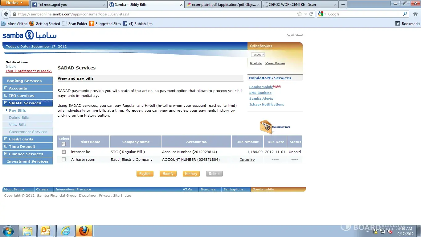 The other payment shows on my SAMBA SADAD is now SR1, 184 and now this is 4 months charge.