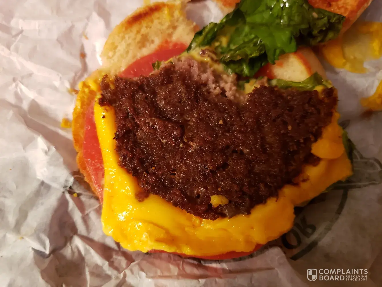 We ordered delivery for a treat. Thankfully my grandson's meal was good. Mine wasn't. I bit into a hard nasty patty. I didn't want to spoil it since it was his idea. It was horrible. I opened the bun to find a small, thin burnt piece of meat. It looked like they took 1/2 a patty, flattened it as much as possible to be larger than it was. It was about 2/3 of the size it should be and thin as a piece of paper, and cooked to the consistency of beef jerky. We always enjoy steak n shake; so I was very shocked. The store is located on Mt.Zion Pkwy in Jonesboro, GA. I just thought they should be aware.