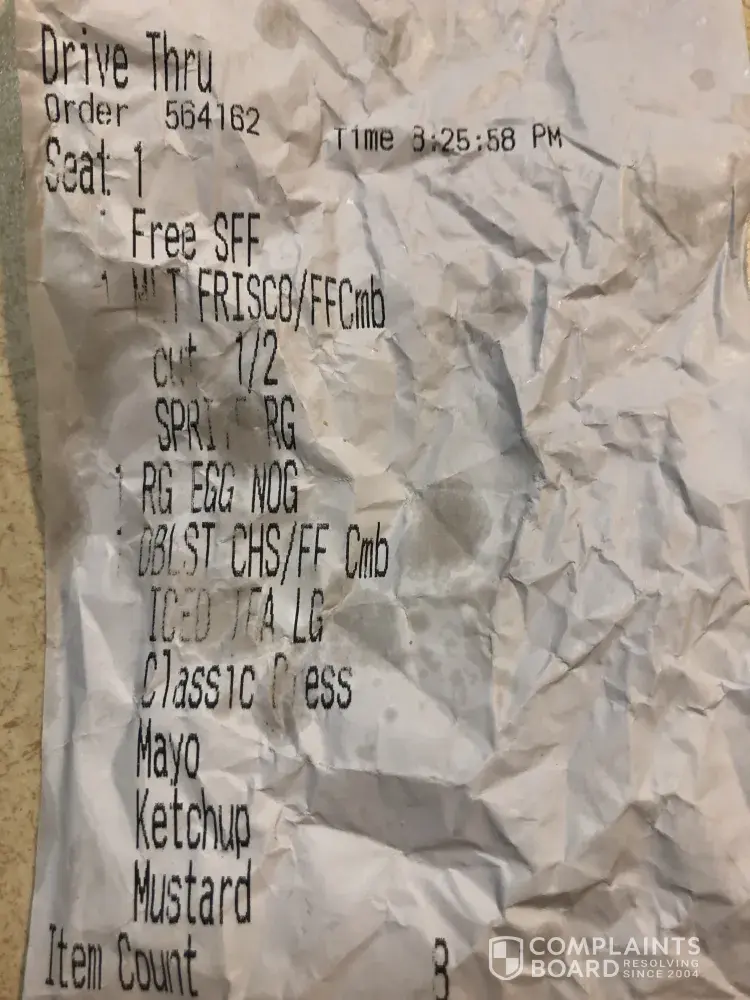Lastly, on March 8 I received a call from the Steak N Shake complaint line from a young lady who I do not recall her name and she took a report but I have not heard back from her and it's been over two weeks.