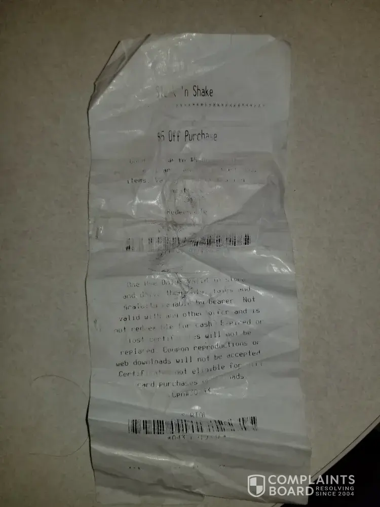 I purchased #4 $20.00 Steak and Shake gift cards in the beginning of December and received the coupons for $5 each that couldn't be redeemed until January but when I tried to use them I could only use #2 because the cashier couldn't scan # 2 of them This is very frustrating because I eat there a lot and I wish they had a better system thanks Larry Brooks [protected]