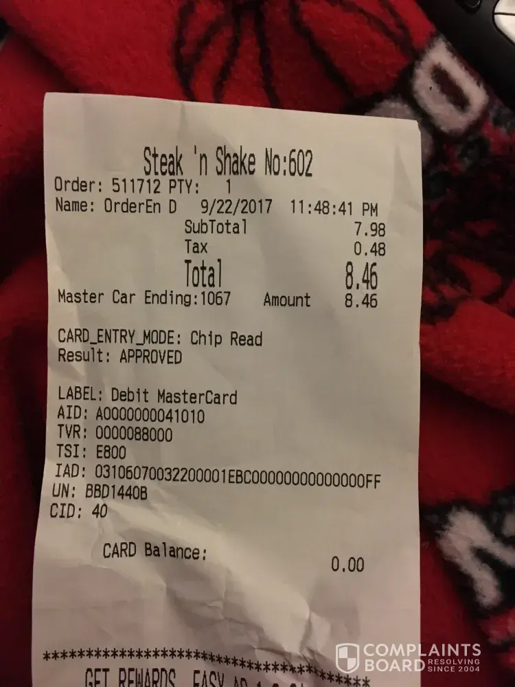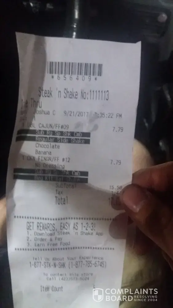 As for a resolution, please pay them a visit as a secret customer and witness that mess for yourself. They carry the Steak N Shake name but I know if Corporate Steak N Shake personnel would see what their name is on they would shut that place down on the spot. Its in serious need of new management and new personnel.
