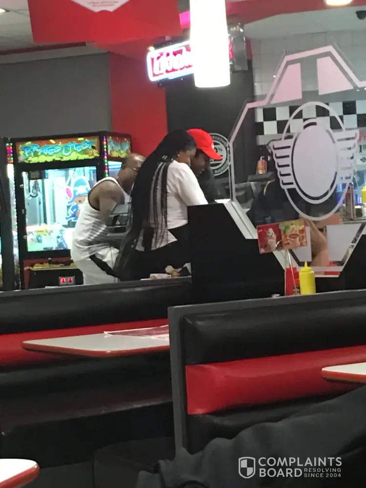 Pulled up to drive thru to see this and it's ridiculous that it looks like this . The service is so slow and the employees take their time getting orders out because they spend more time talking to each other . This is the worst one I have ever been at . Nothing good to say about this Steak n Shake . Needs someone to come in and clean this place before Osha and BBB is called . If this place was on a time scale we all would get our food free it's how slow it is and the food is disgusting and cold .