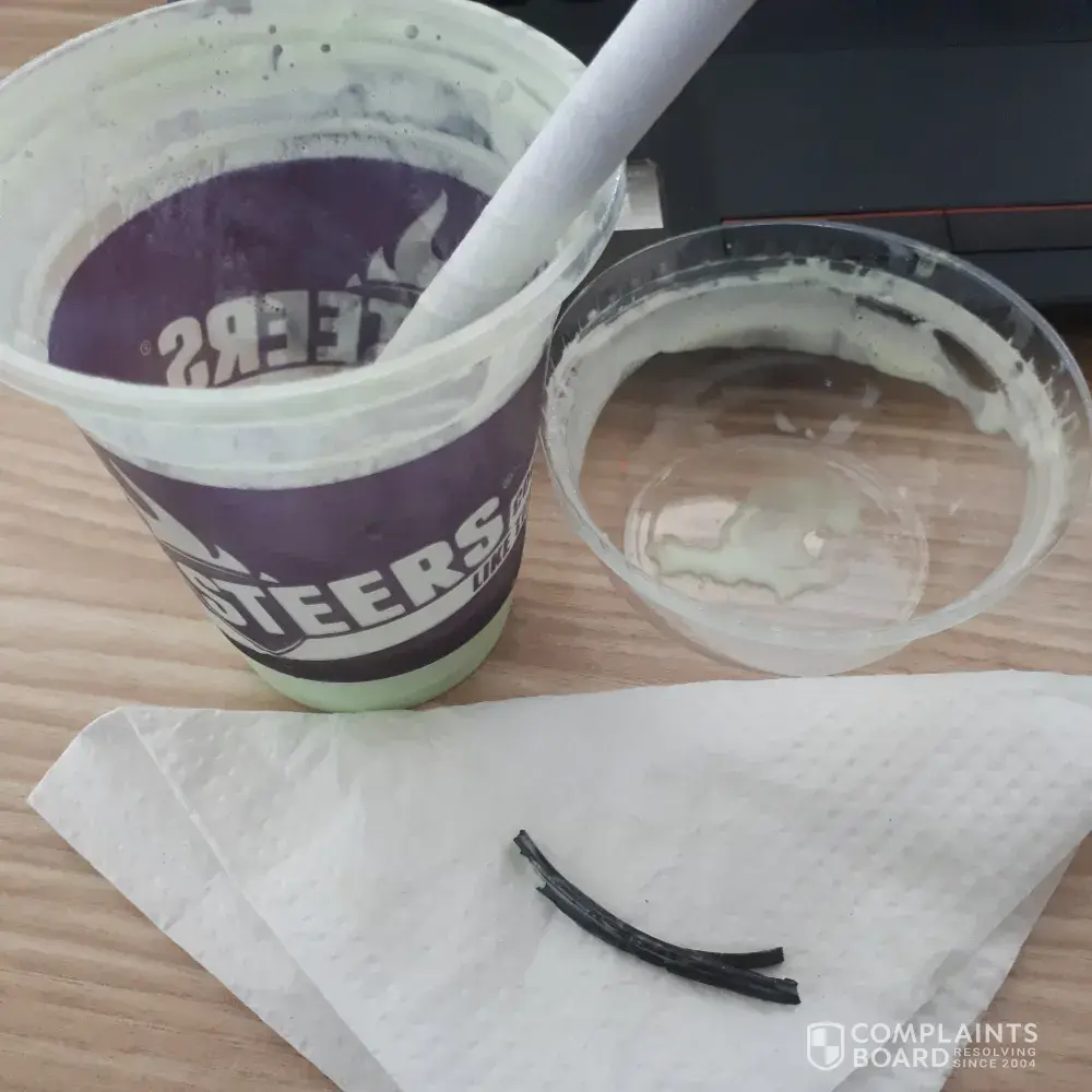 I bought a lime milkshake 7 November 2018 at 11h27 at a Steers branch in Kenilworth Centre and found a piece of rubber that probably belongs to the machine, which makes the milkshake, in my drink