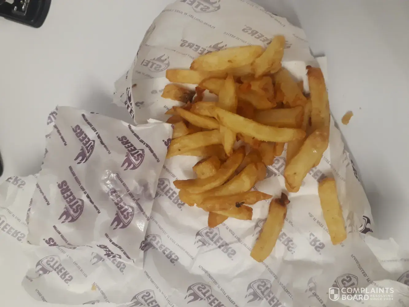 I went to west coast villadge amd thought i will get me some hot chips from Steers. A small cost R15.90 and thought nothing to pay that amount because i knew it will be worth the money. I didnt think of writing to you and complaint but I just thought people are getting ripped off by these advertising. I dont know if Steers think they give their customers value for their money or is it the people that is trained to serve people scrap from the fryer. i was so disgusted because i paid for chips just to be thrown away. This is so low not even pick nd pay will serve people chips like these, that you sell to customers.