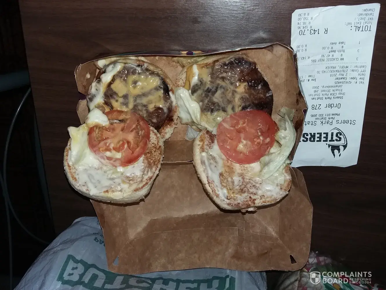 On sunday 6 april my family and I went to steers white river to try the pita burger. Well what on earth? Its the biggest waste of money ive ever spent. Ill add the photos of 2 of the burgers and you guys tell if you think its worth r40.00