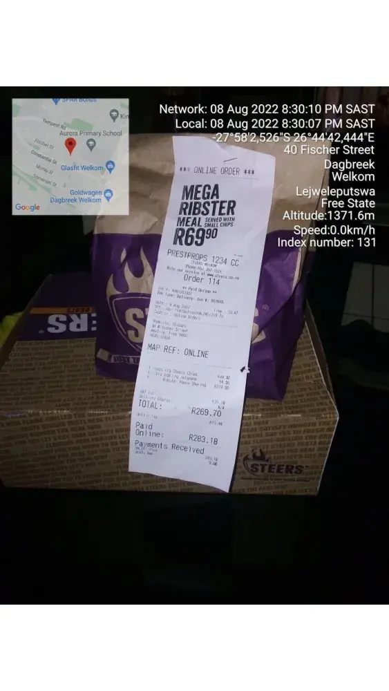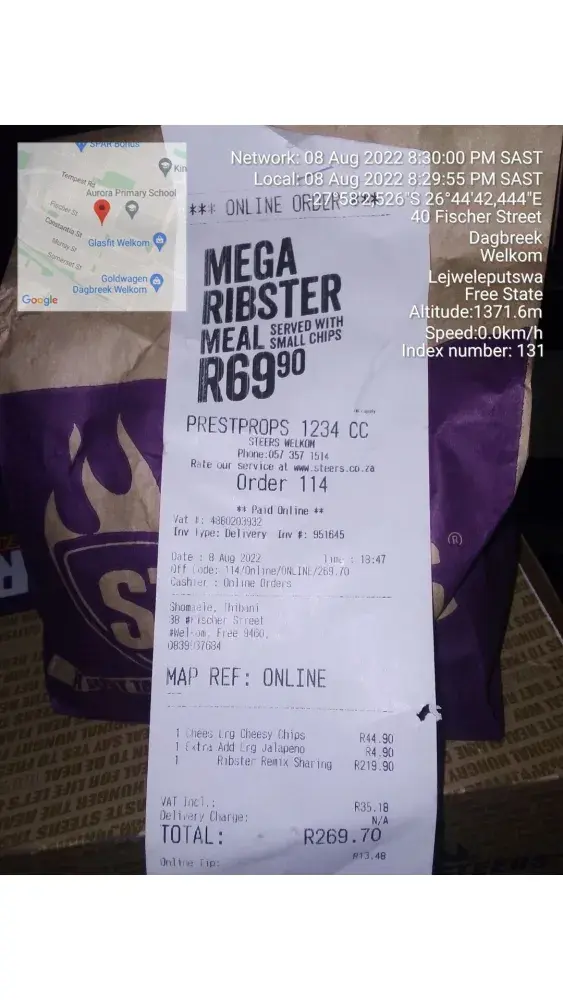 We made an online Purchase today (08/08/2022) at 18:47pm from STEERS WELKOM and we only received our Order at 20:30pm which is almost two hours later. The Food was cold and not in good condition anymore.