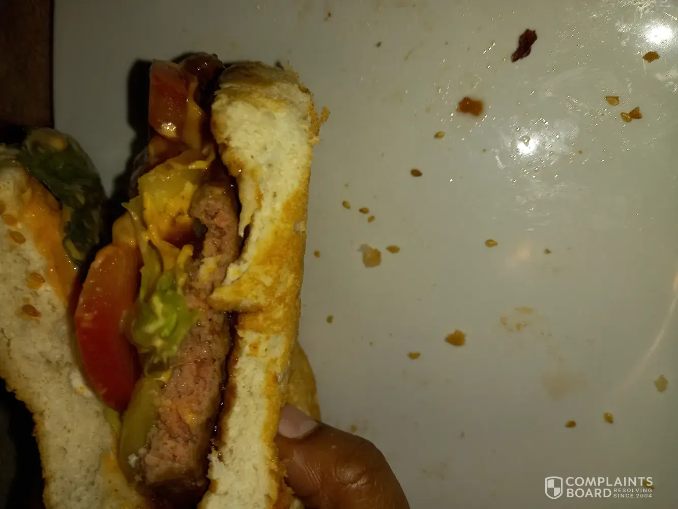 Upon eating the burger I found a piece of hair which looked similar to pubic hair also my sons toasted sandwhich we found blanket fluff ontop of the sandwich.