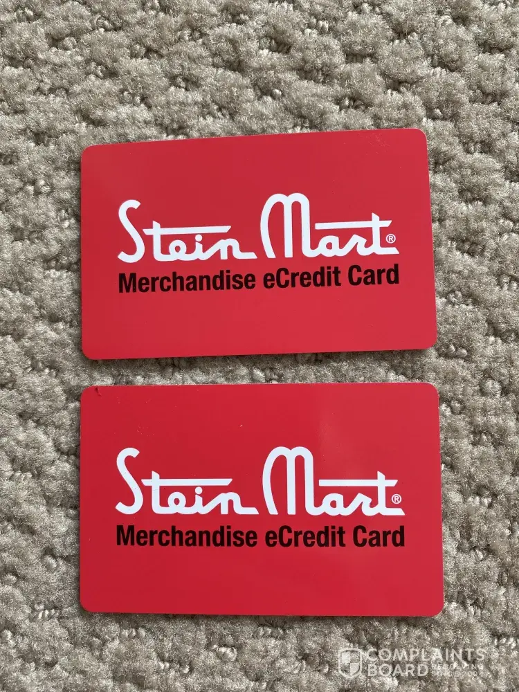 United States. I contacted Stein Mart customer service at [protected] at 1:38 pm CST on 7/28/21 to request a refund check in the amount of e-credit on each card. I spoke with Frank, the customer service representative, who stated that these cards are no longer valid per the old management. He went on to say that I could email a picture of the front and back of the cards to the new management at [protected]@steinmart.com and I would receive $25 in total per person NOT per card and NOT for the dollar amount of the store credit. I have one e-credit that is $63.02. $25 isn't even half of my hard earned money that I paid on that card alone. I do not know the total e-credit on the other card. It is appalling and deceitful to not honor the total dollar amount I paid for the merchandise. I would like the total dollar amount of EACH e-credit refunded to me via check.