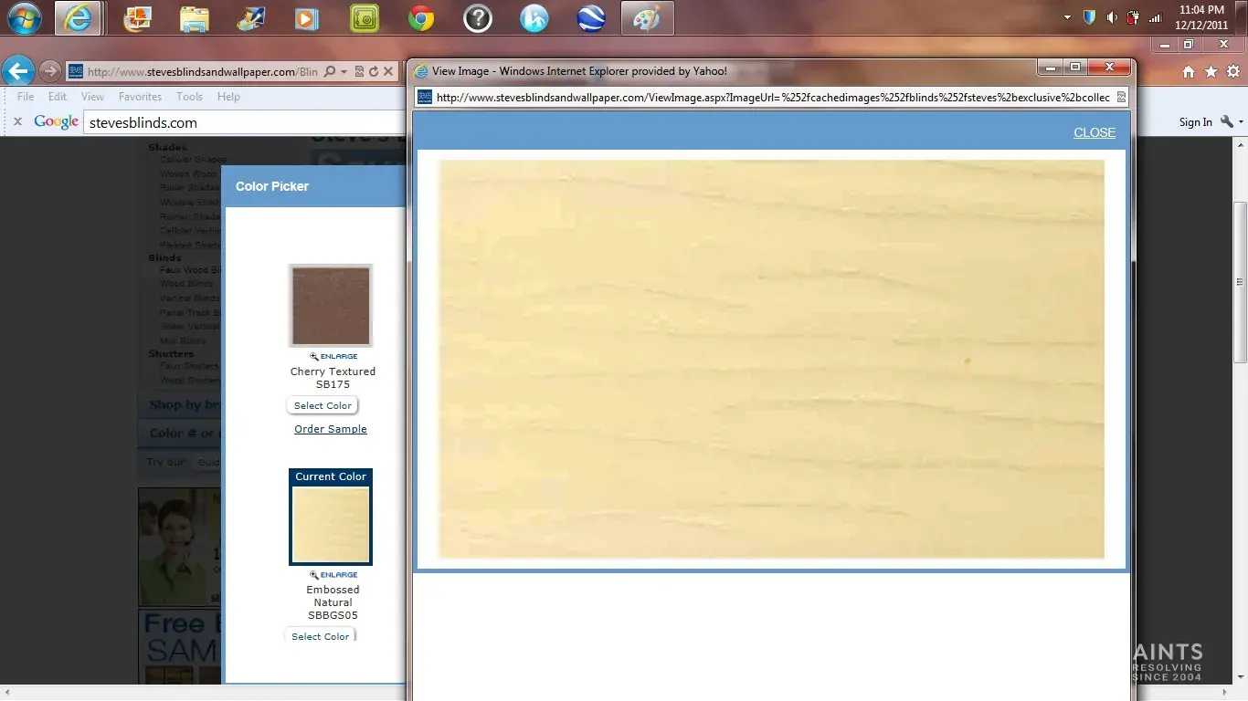 I have attached photos of the website's samples for the Natural Embossed Faux Wood Blinds I ordered and a picture of what I really received. As you can see, there is quite a color difference. I emailed the company 12.6.2011 to find out if they shipped the wrong blinds as if not, there is a big discrepancy in the color shown on their site. I would expect to hear back in 24 hours however it took over 5 days. I sent several emails to the addresses found on the website. Due to my work schedule, I am unable to call in to discuss and hopefully, pictures speak louder than words. The answer I received back was "have reviewed the all relevant calls and notes associated with order #361922. It is my determination that the order was received as ordered and blind return information was made available to you by scripted conversation and our websites written policies.