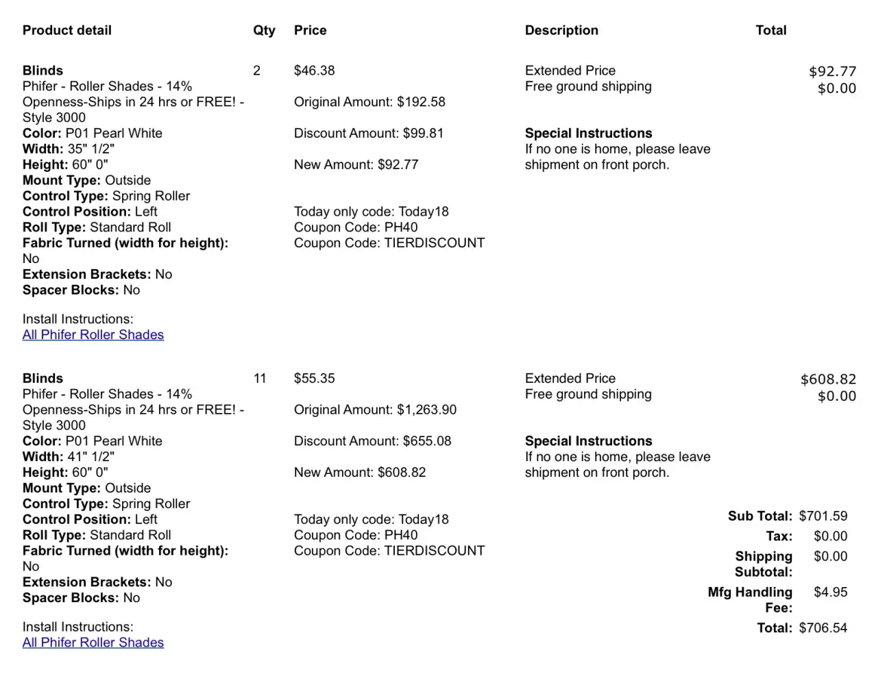 On 7/2/22 I ordered ten custom blinds paying over $1,800.