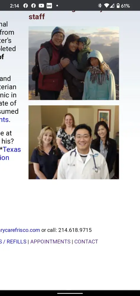 My partner and I have been seeing Dr. Wang every since and before he took over Dr. Hursey's practice. We were originally part of her practice and decided to stay on after we go to know Dr. Wang. We have multiple friends who also go and see him and have referred him. Over a year ago, I went to him because I was in really bad shape and thought I had a bronchial infection. It turned out, that I had walking pneumonia. Dr. Wang was very diligent with his exam with me and correctly diagnosed my problem. Thanks to him, I did not have to go to the hospital. I enjoy Dr. Wang because he cares and he knows that I will tell him everything I can about why I am there. Everyone I know, enjoys going to him and are comfortable with him.