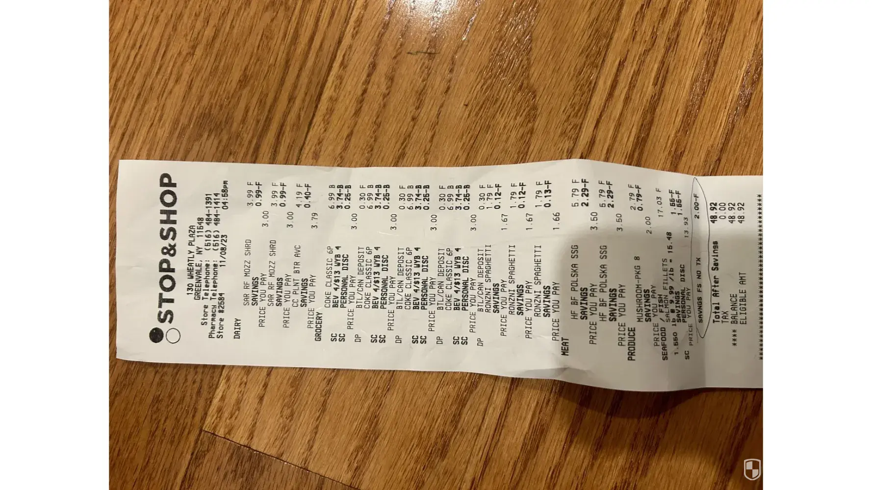 I made groceries purchase from the Stop & Shop located in the Greenvale, NY 11548 location. Upon checking the receipt, I realized 2 mistakes. Mistake 1: all the item prices do not add up to the total on the receipt. The total on the receipt is $48.92 before tax, but the actual total before tax should have been $49.71. Mistake 2: we should have received $2...
