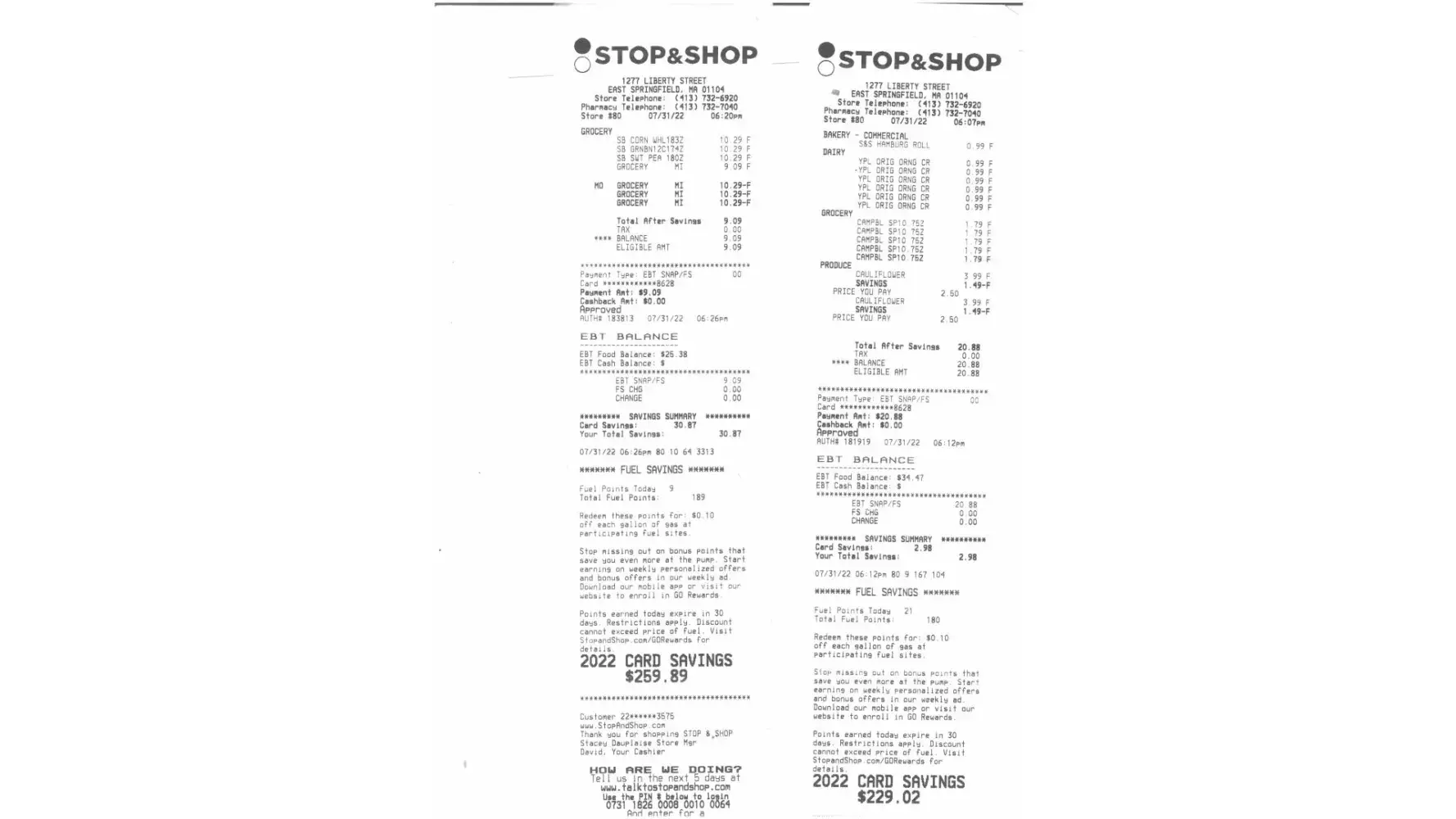 A copy is hand deliverd to stop and shop 1277 liberty Street East Springfield Ma 01104 Store 80 having a number of [protected]