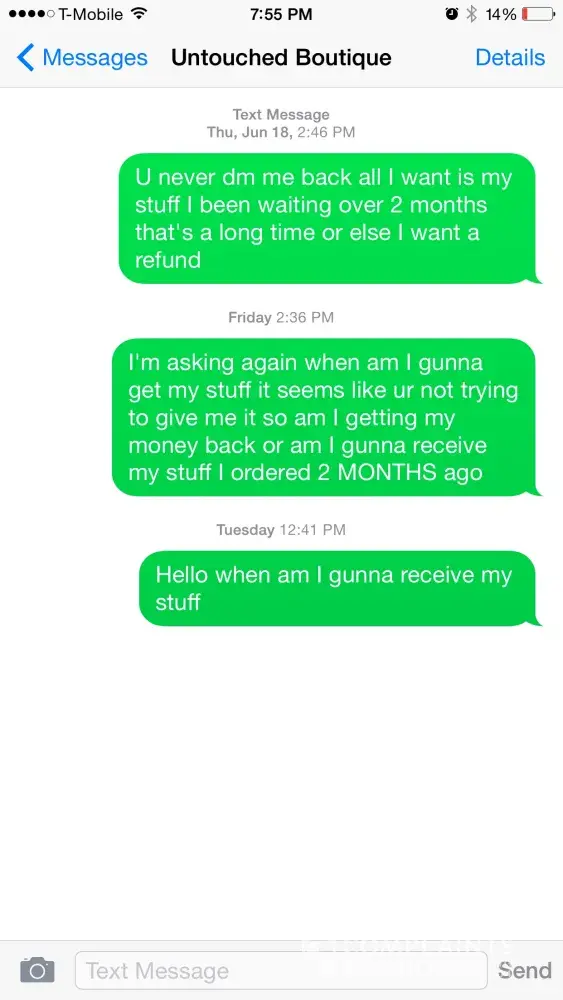 Business owner is a rude woman w/ excuses From what I've read && seen on her Instagram all of it is true . She does block people && delete comments she doesn't like or when they're about orders . Not to mention she comes off super rude. I placed two orders through her website about a month ago. Both which I PAID $2 for two day shipping . So where's my order ? Have no idea . I've contacted her several times asking about my order . Every time she asks "what's your name?" She told me she would deliver the next day. Never got my order . I kept texting her I could pick up . Then she told me a day &&a time && when the day came I asked for address to pick up && no response as expected. Then the next day I texted her && she said she would be delivering after 4. So I waited at home . Never came, no show . I cannot believe the amount of time it has taken to get my orders . Just because it is cheap does not mean she can take her sweet ### time shipping out things . Yeah we get it you have a life && a child to take care of but If you cannot act professionally nor make good on your words then DONT be running a "business" . Simple as that . && if I don't receive my orders writhing this week I will be getting a refund . Whatever it takes . Even if I have to file for a lawsuit . This is fraud .