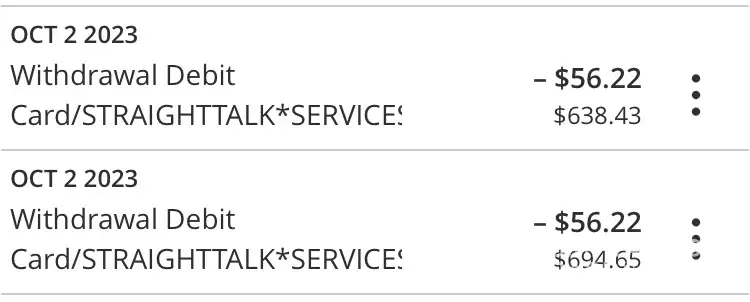My auto pay did not go through so I decided to pay online in September for two phones so there should have been only two fees. For some reason I can't figure out how to bundle phones, so they take it out to different payments. So September they took a total of four charges when they should've only taken two. I ignored it, because in the past, I was told that "no worry it will go towards next month, and you will not be charged." Well, that's funny because they just charged me for those same two phones again in October just now this week. I had just enough in my account for my rent so this has overdrawn my account.