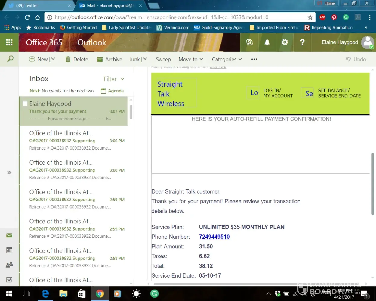 I have the transaction id number that lists a phone with an imei that isn't mine and an email from straight talk thanking me for the payment even though i'm not a straight talk customer.