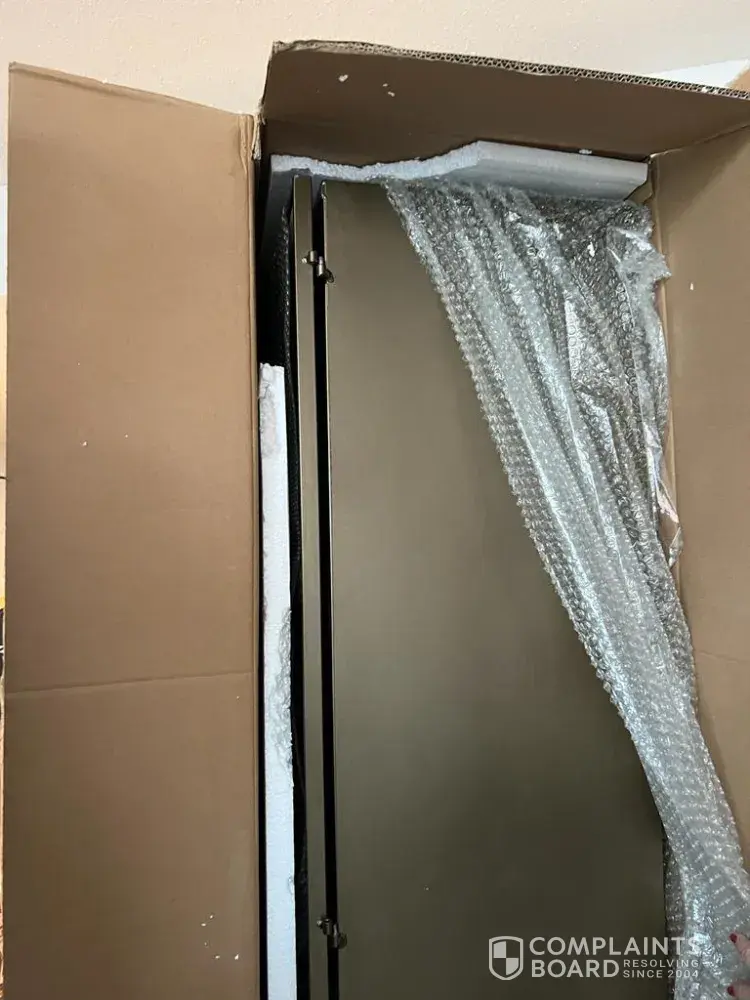 They delivered on Sunday finally however the delivery guy was SO rude and unhelpful. He delivered it upside down (the feet were up) and I asked him to let me check the cabinet to make sure it wasn't damage. He told me it was not his job. I told him that I can't do it alone if it's upside down or wrong way round I can't fix it. In fact not only was it upside down when I opened but the glass doors were off the hinges, the hinges were bent so now the doors are not even!