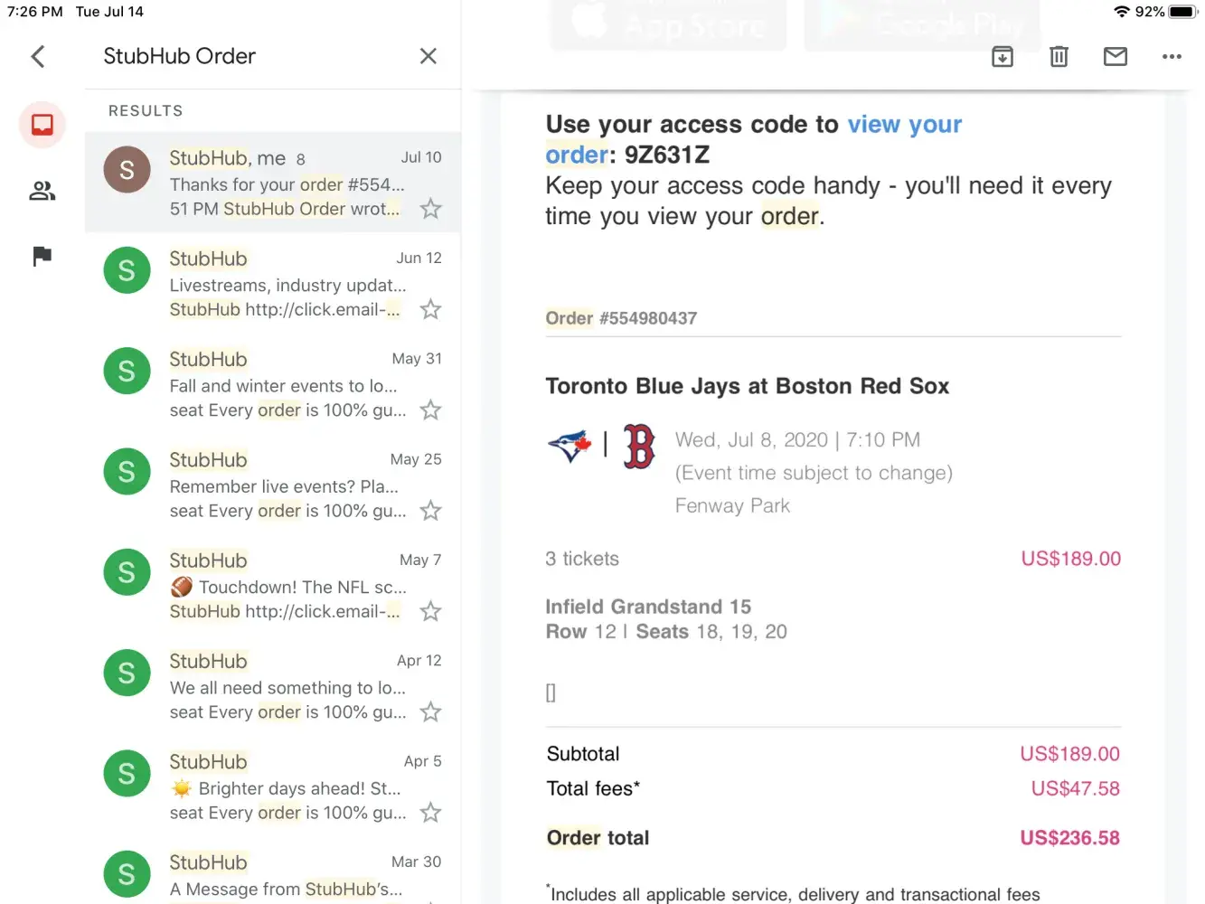 Baseball tickets never received for game at Fenway Park between Boston and Toronto scheduled for July 8, 2020. Tickets ordered in early March, before COVID-19 restrictions. Payment was cashed right away by Stubhub although no tickets (3) were ever received. Many requests were made for reimbursement or credit but no response. - totalled approx. $240 USD. This is completely dishonourable and horrid treatment of customers and is tantamount to theft.