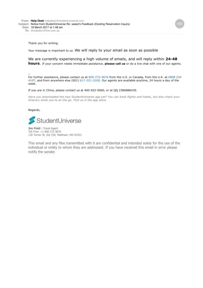AVOID the shoddy booking agency that is STUDENTUNIVERSE.com