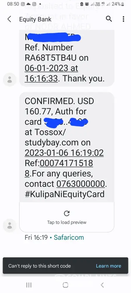 It is not acceptable for an online writing service to behave the way studybay.com does. I made a complaint and they said "our support team is there 24/7". This is a blatant lie. They steal money from people expecting they will get frustrated with the refund policy and give up. This complaint is made to show you an example of their ping pong games when you want a refund. The email I used to register on their site is [protected]@gmail.com. However, studybay.com rep will reply to this complaint with "sorry, kindly provide email and we refund your money directly" or "the finance team has received your case and are working on it". After this reply they disappear for 2 months expecting the customer to give up. They know that the request for refund is for money that is not in use. They also know that I made the same complaint 2 months ago. It is very simple to give me back my money. Just reply with " this and this amount has been credited to your account". If your reply is something different, it just shows that you are playing a game of ping pong. So far you have showed that you are scammers. I have previously made a complaint and you have chosen to take no action.