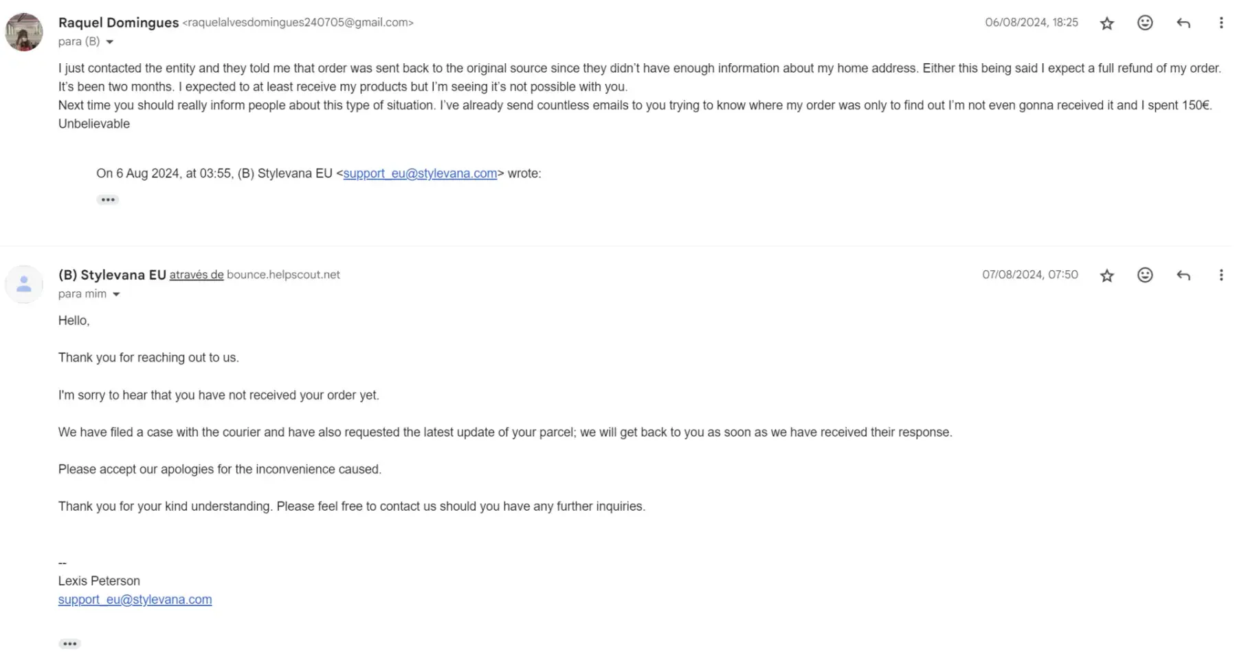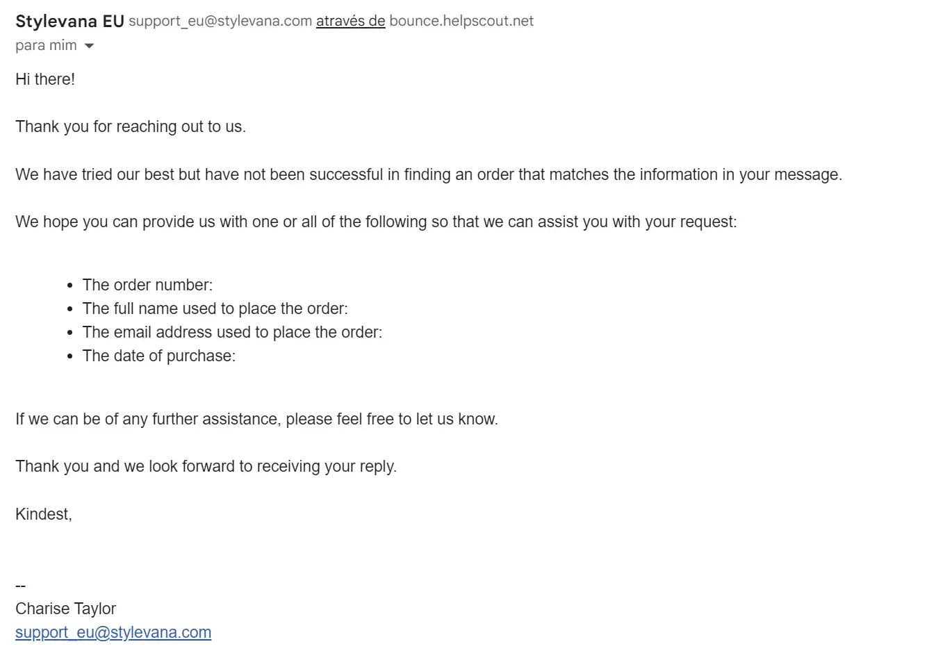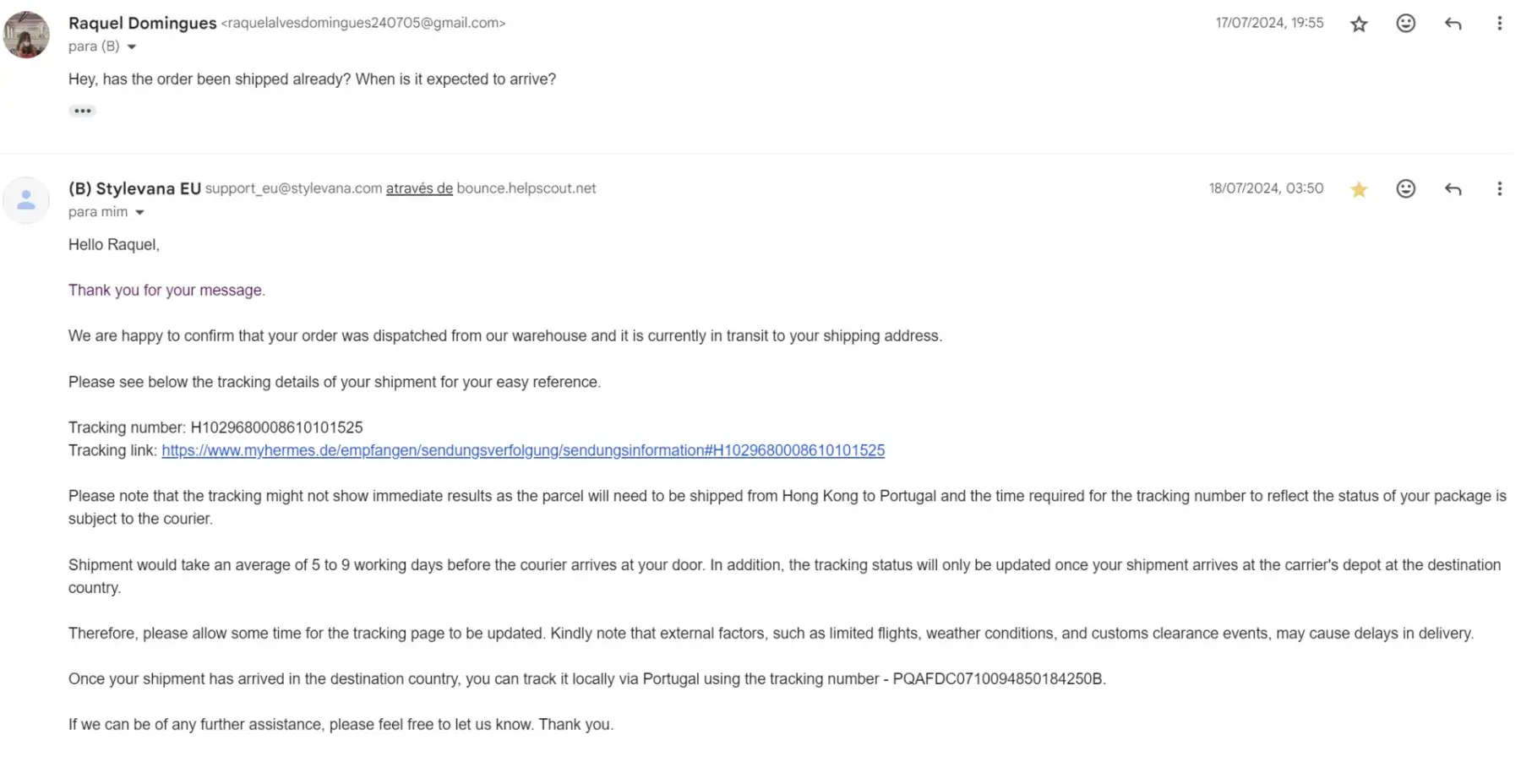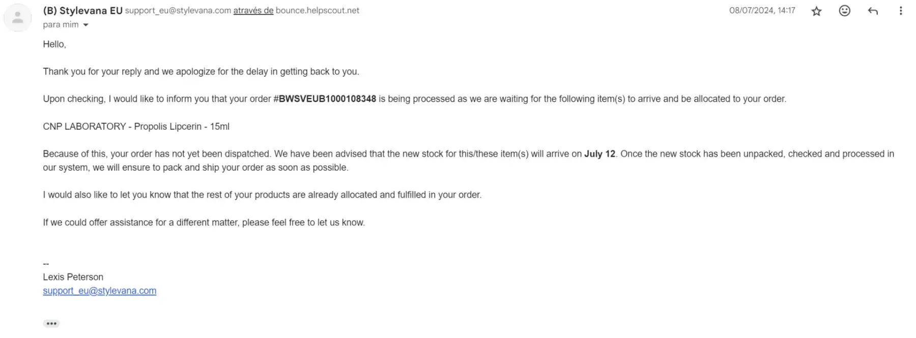 On the 6th of June of 2024, I placed an order of 160,80€ on Stylevana. The order included a lot of skincare products for me, some friends and family members. I was warned that it could take up to 2 weeks to be processed and 10 days to be shipped to my country (Portugal). I created an account associated with the following email...