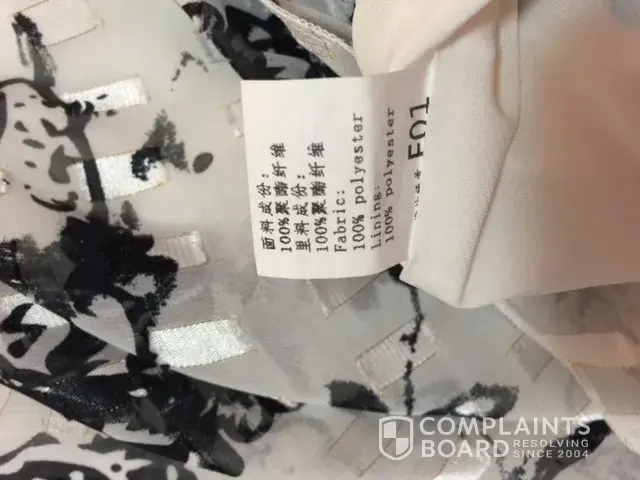 Then some other orders with materials described as Chiffton, but label in the dresses are 100% POLYESTER!
