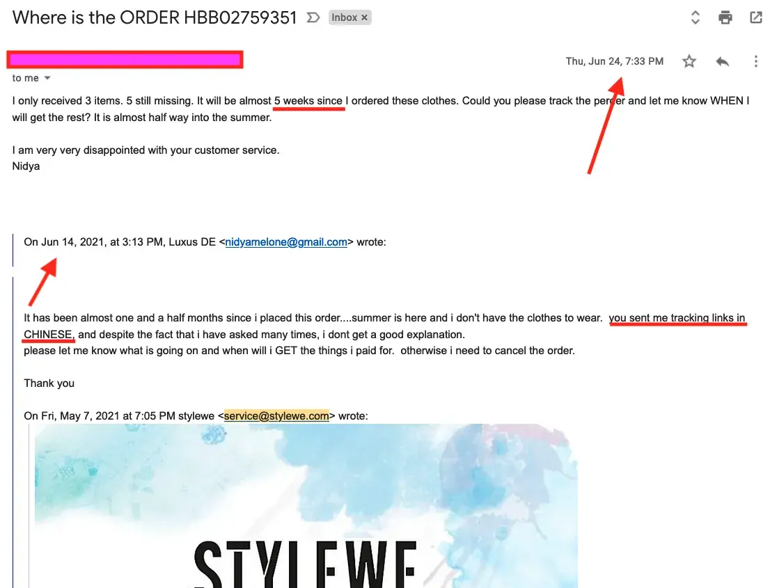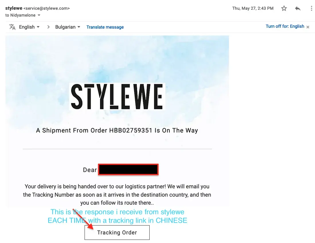 Stylewe.com is a complete scam. I placed an order on May 7, 2021. After six emails and 3 months later, there is no merchandise, no refund, no number to call, and no longer any replies from STYLEWE. Dont seem to be able to upload images to this review, but i have all the completely useless standard email replies from STYLEWE: " your order has been shipped, here is the tracking number. The link info IN CHINESE.