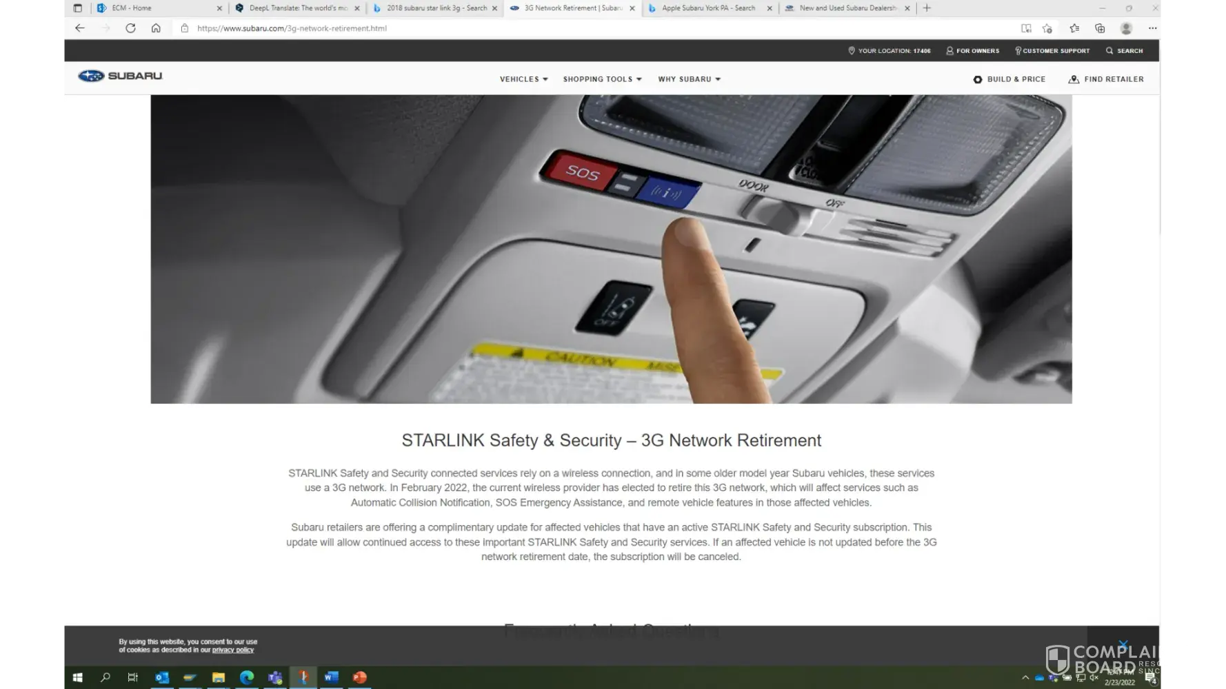 Desired outcome: I want the Star Link 3G update for free as advertised on Subaru.com