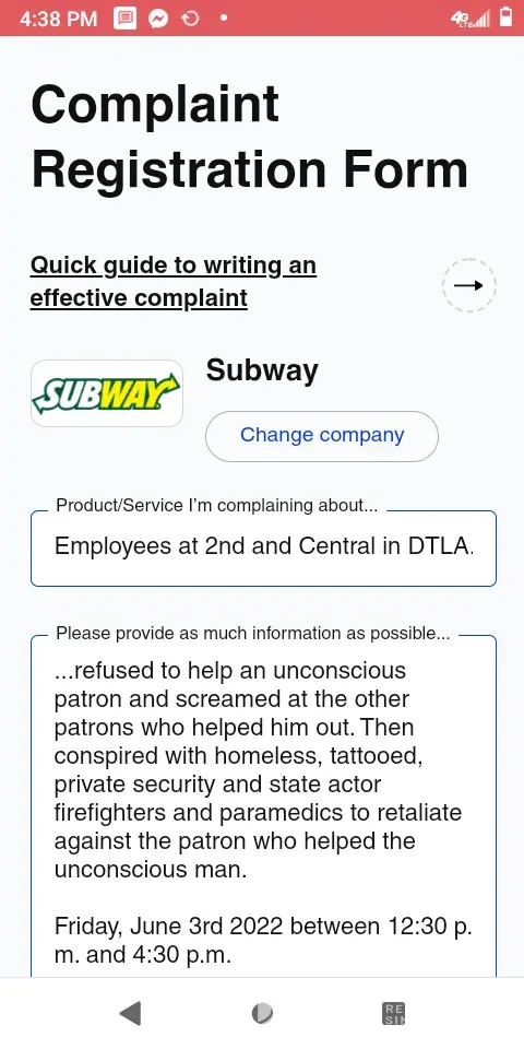 Read full complaintSubway on 4949 W Slauson Ave. suite A-1 Los Angeles Ca 90065