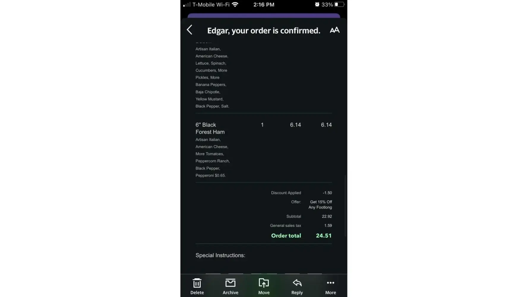 on 6/12/2020 4:54pm I placed an order for 3 subs order#4DF684BO-OF for pick at 5:15pm which I payed online and the subway was closed. I emailed the manager last night and emailed within a reasonable time but never letting me know why the restaurant was closed so early and when were they going to reimburse the money for my order. I have emailed Genaro Rodriguez twice since he last answered and I haven't heard back from him. I payed $24.51 and all I want to know is when ill be getting reimbursed cause nobody is answering back to me thanks.