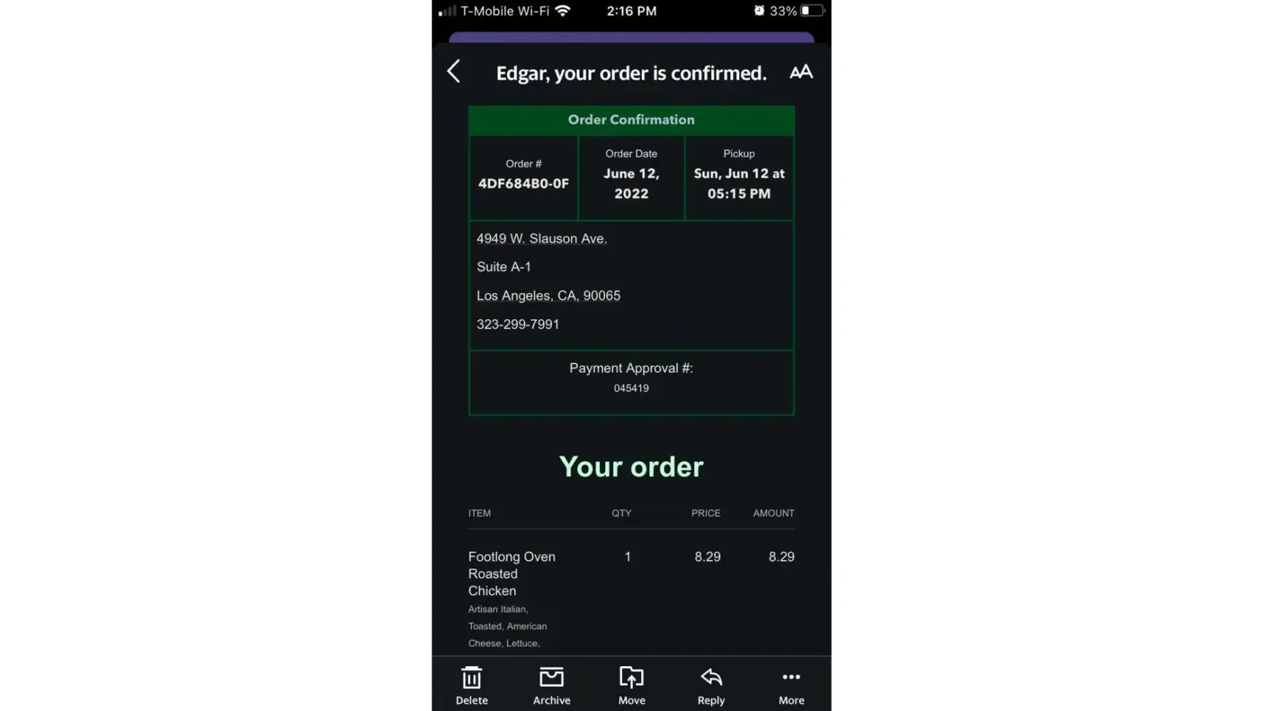 June 7, 2022, 5:50pm, Subway#56203-0, Phone: [protected]